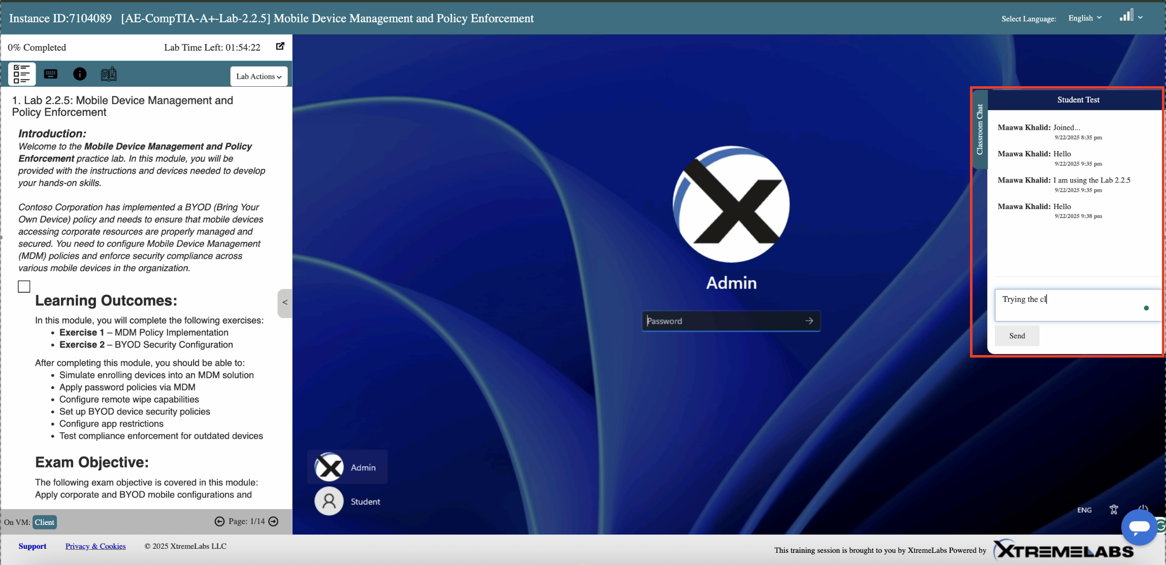 By embedding communication directly into the learning experience, Classroom Chat transforms the virtual lab environment into a truly interactive digital classroom—one where support, collaboration, and engagement happen naturally as part of the workflow.