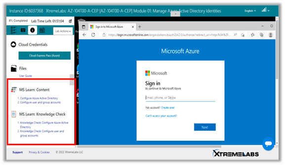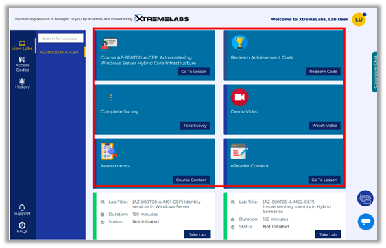 Instead of separating content from practice, XtremeLabs allows instructors to embed all core learning materials directly within the lab environment. Lecture content, guided instructions, training videos, Microsoft Learn resources, and assessments can all live alongside the hands-on lab itself. This means learners can move naturally from understanding a concept to applying it—without ever leaving the platform or losing their place.